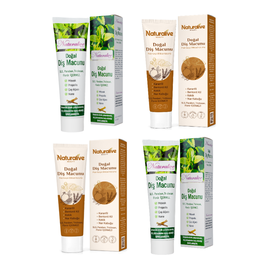 Helal sertifikalı ve yerli üretim olan Naturalive Diş Macunu, tamamen doğal içeriklerden üretilmiştir. İçeriğinde misvak, propolis, çay ağacı ve nane özleri bulunmaktadır.